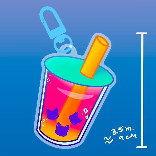 This is a pre-order! Charm will be roughly 3.5 inches tall. Will have three cat head shaped boba inside that'll shake around. Manufacturing will begin by July at the latest.